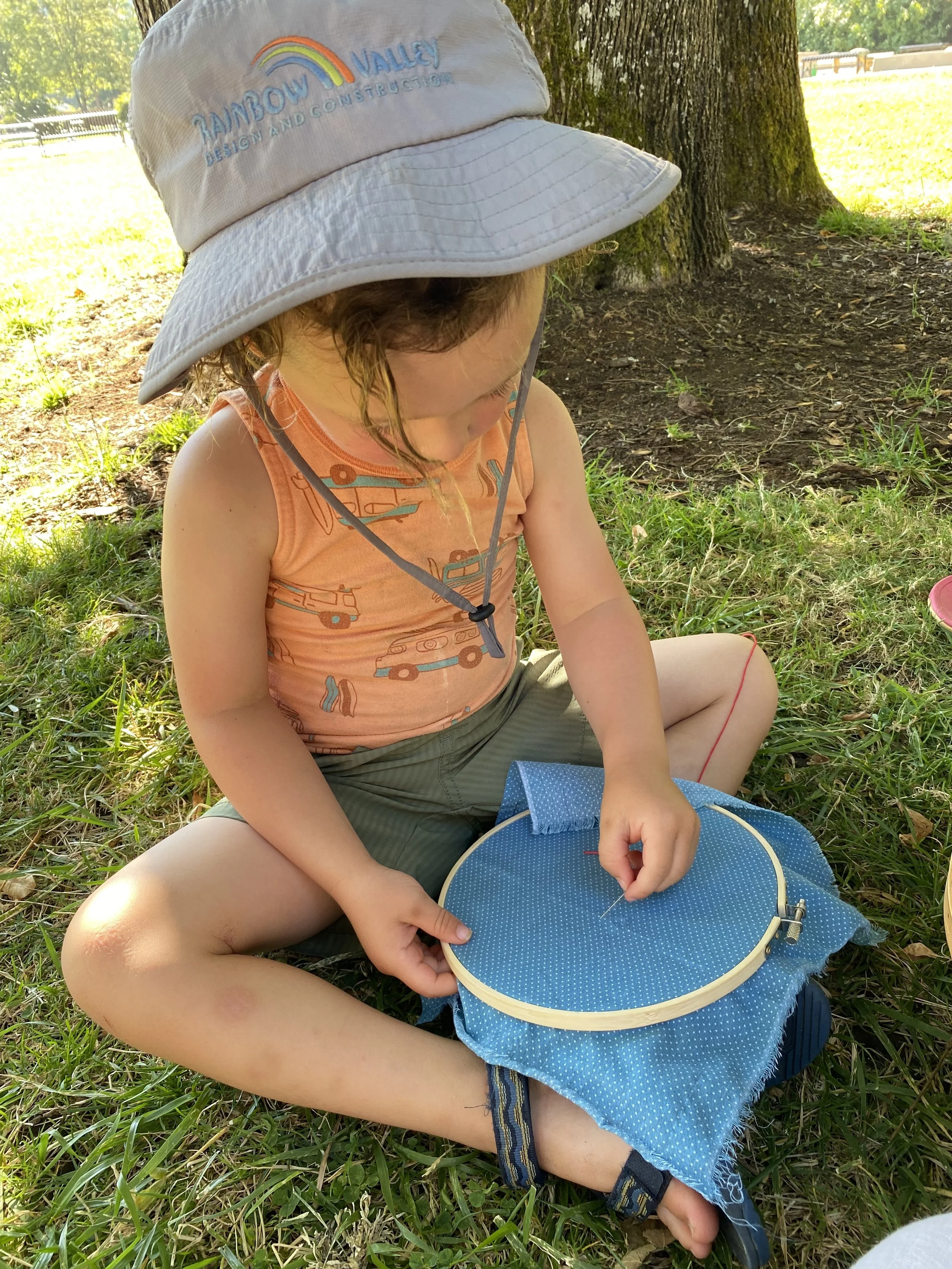 The Moon School Summer Camp is a wonderland of learning through play, craft, exploration, story, music, and togetherness. We meet in an outdoor space in south Eugene that includes a play structure, a forest, a creek, and walking trails. We begin our day playing on the playground and in the sandbox, gather for a snack and story, take a walk through the forest and play along the creek, gather for herbal potion making time, eat lunch, and end our day with games until pickup time. Campers are expected to arrive dressed for the elements with a hat, sunscreen, shoes with heel strap, and a packed lunch.